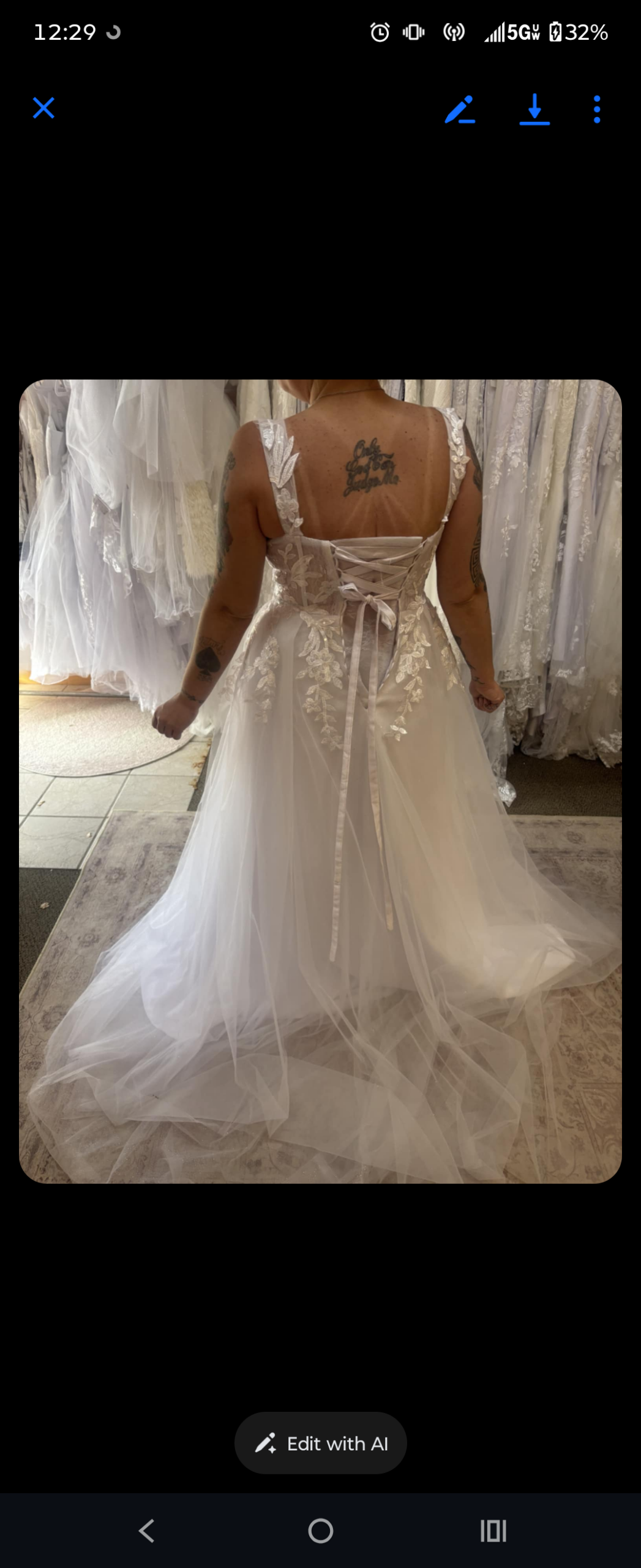 Brand new, worn once for fitting. Things just didn't work out