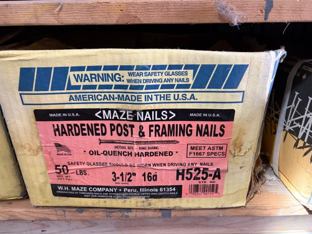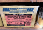 · 3 ½” hardened post nails – 50lb/boxes ..$150/box – 4 boxes