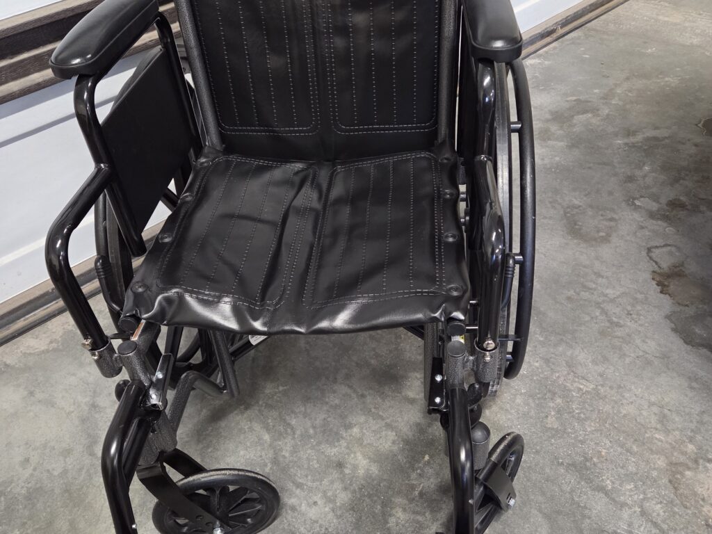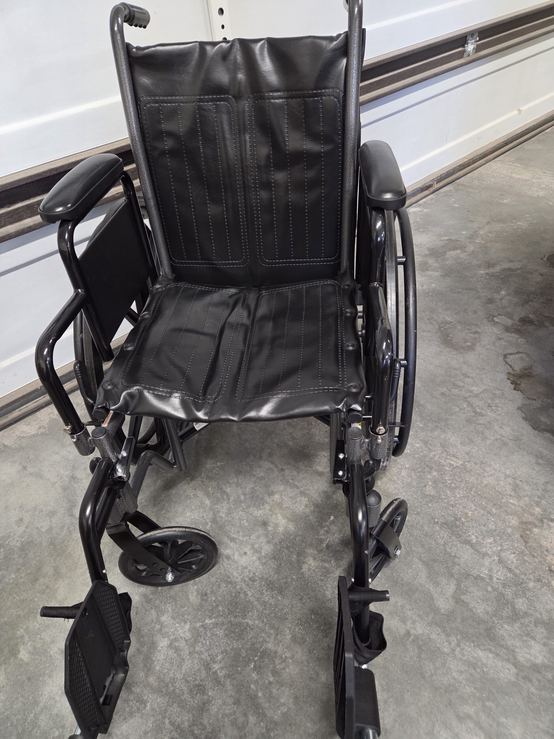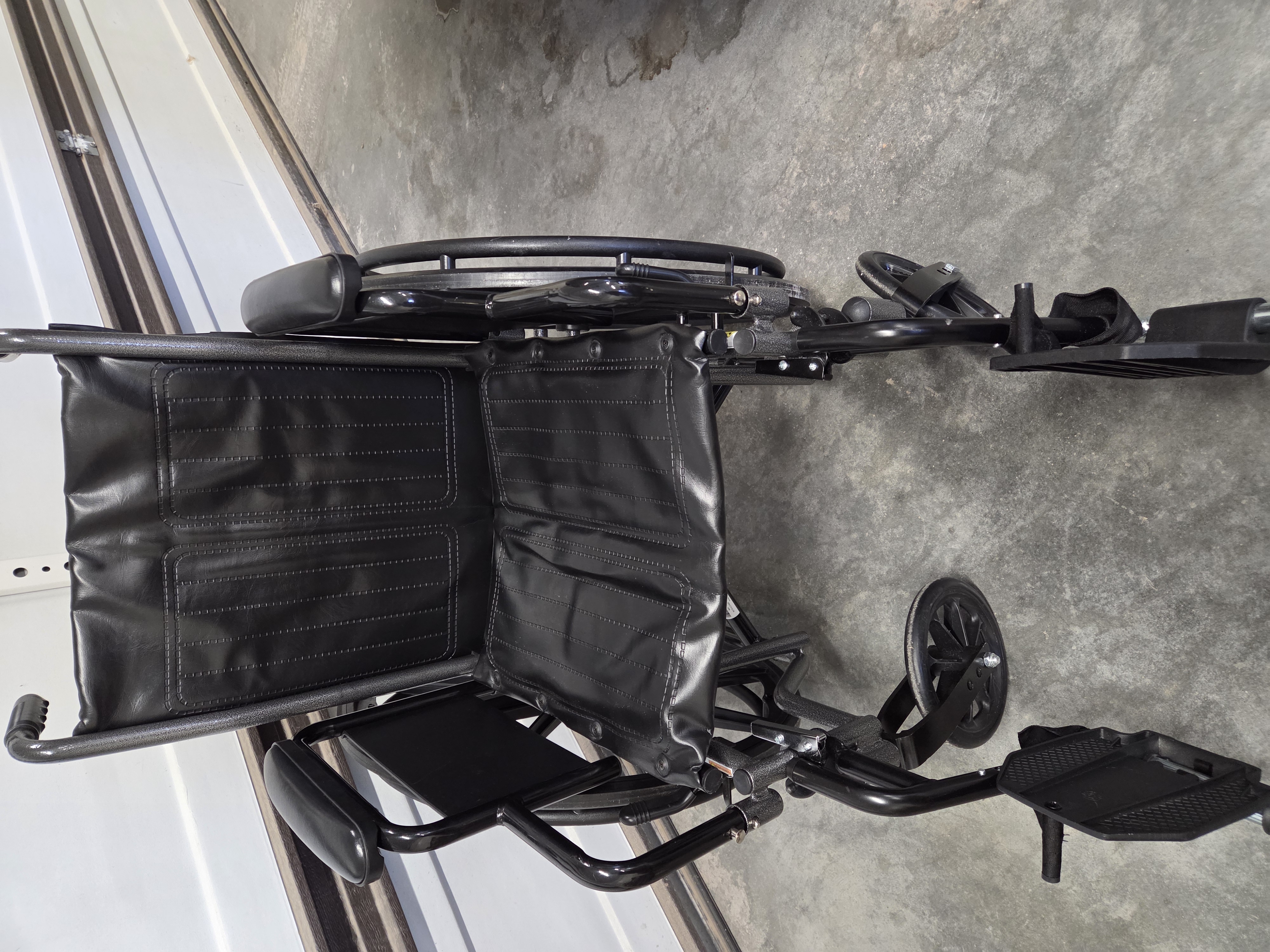 new black wheelchair, purchased for $400, adjustable foot rests, lightweight